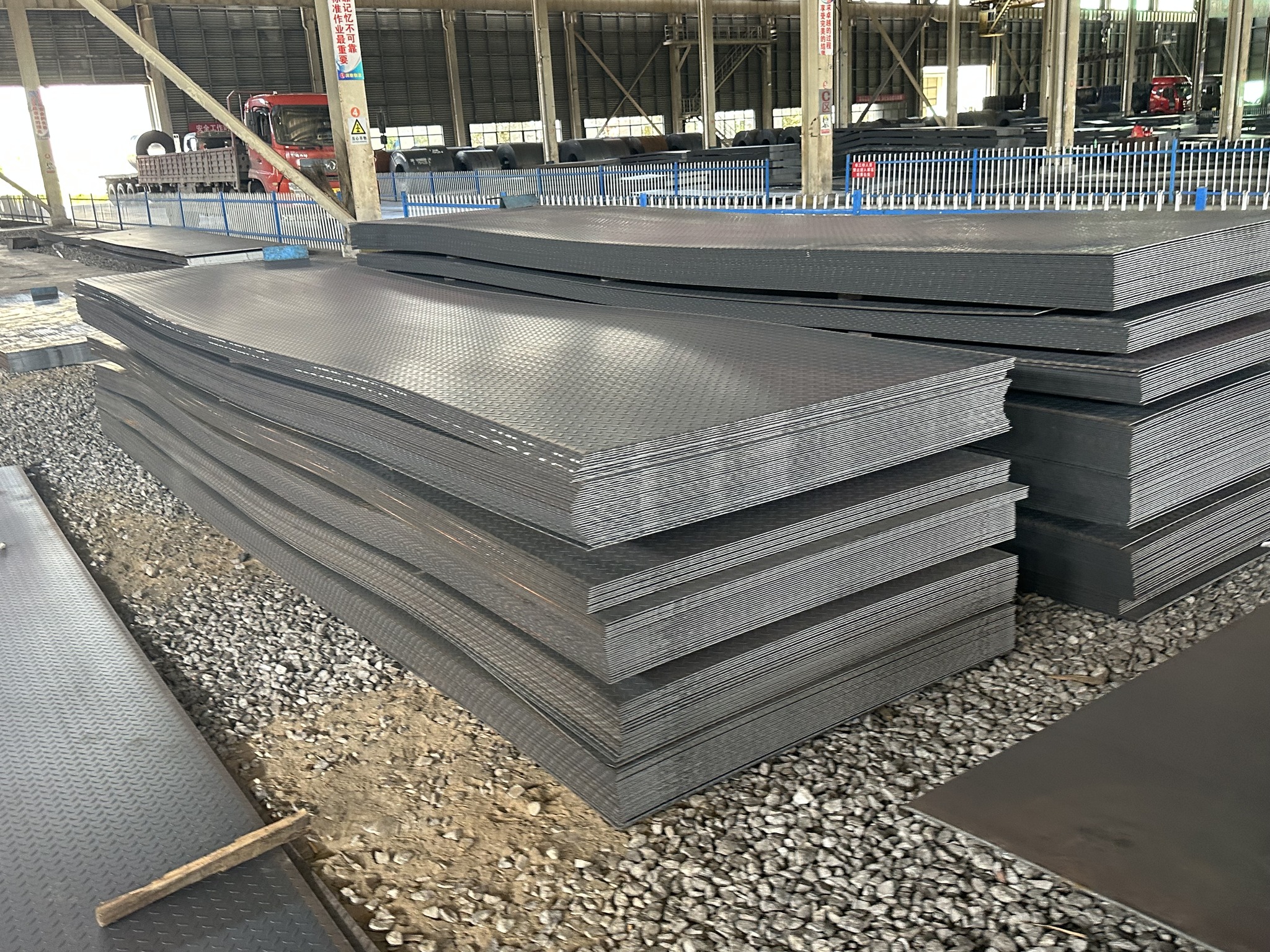 Patterned steel plates have ridges on their surfaces and have an anti-skid effect. They can be used as floors, factory escalators, work platform pedals, ship decks, car bottom plates, etc.